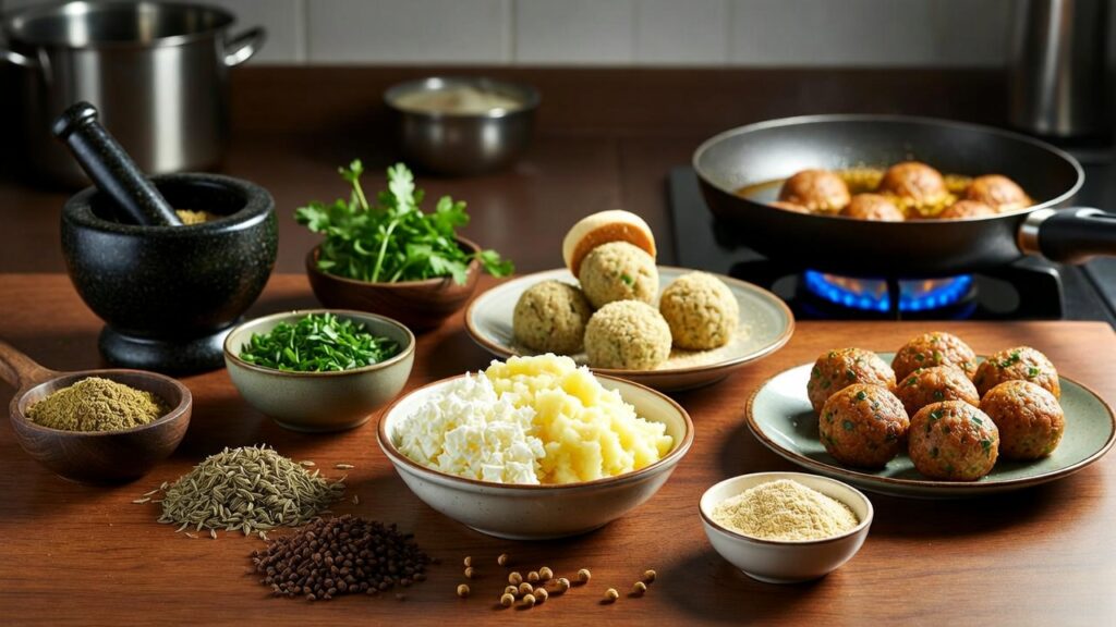 - Koftas cracking/opening → Too wet mix or oil too hot. Chill shaped balls 15 mins in fridge before frying. Medium flame only.